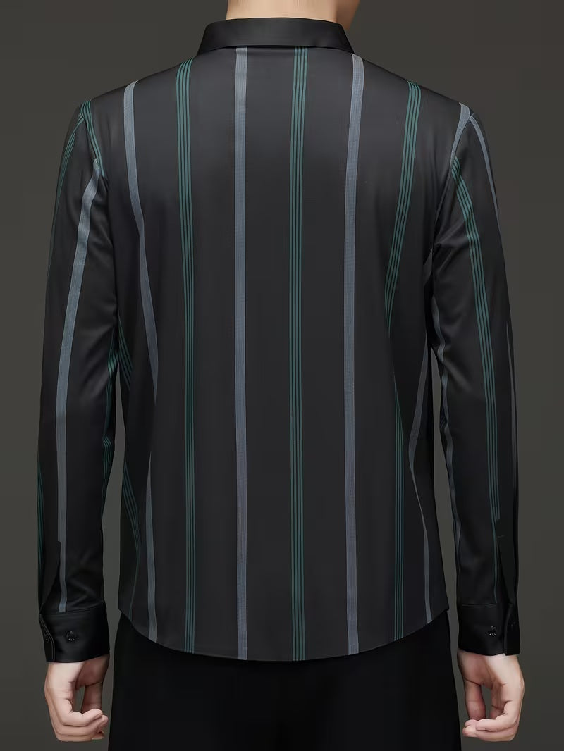 Men’s Black Vertical Stripe Shirt – Slim Fit Premium Stretch Fabric
