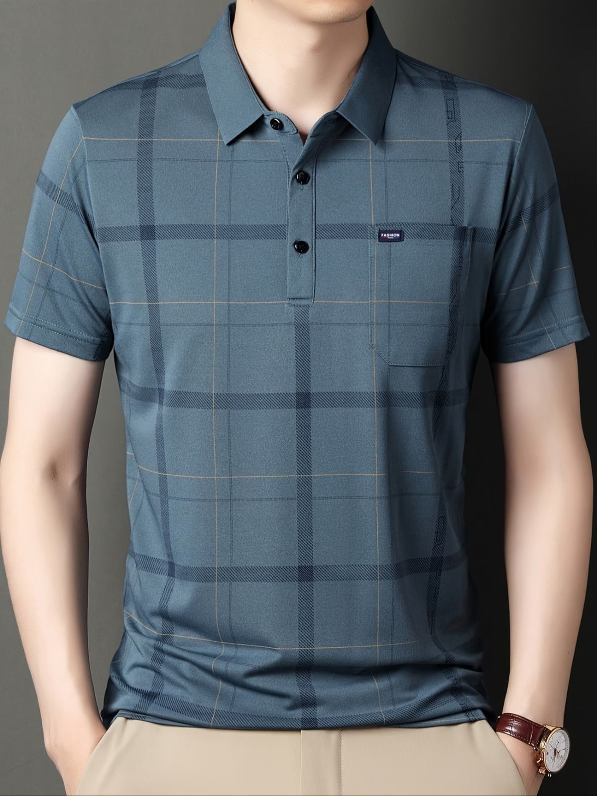 Men’s Premium Steel Blue Checked Polo T-Shirt